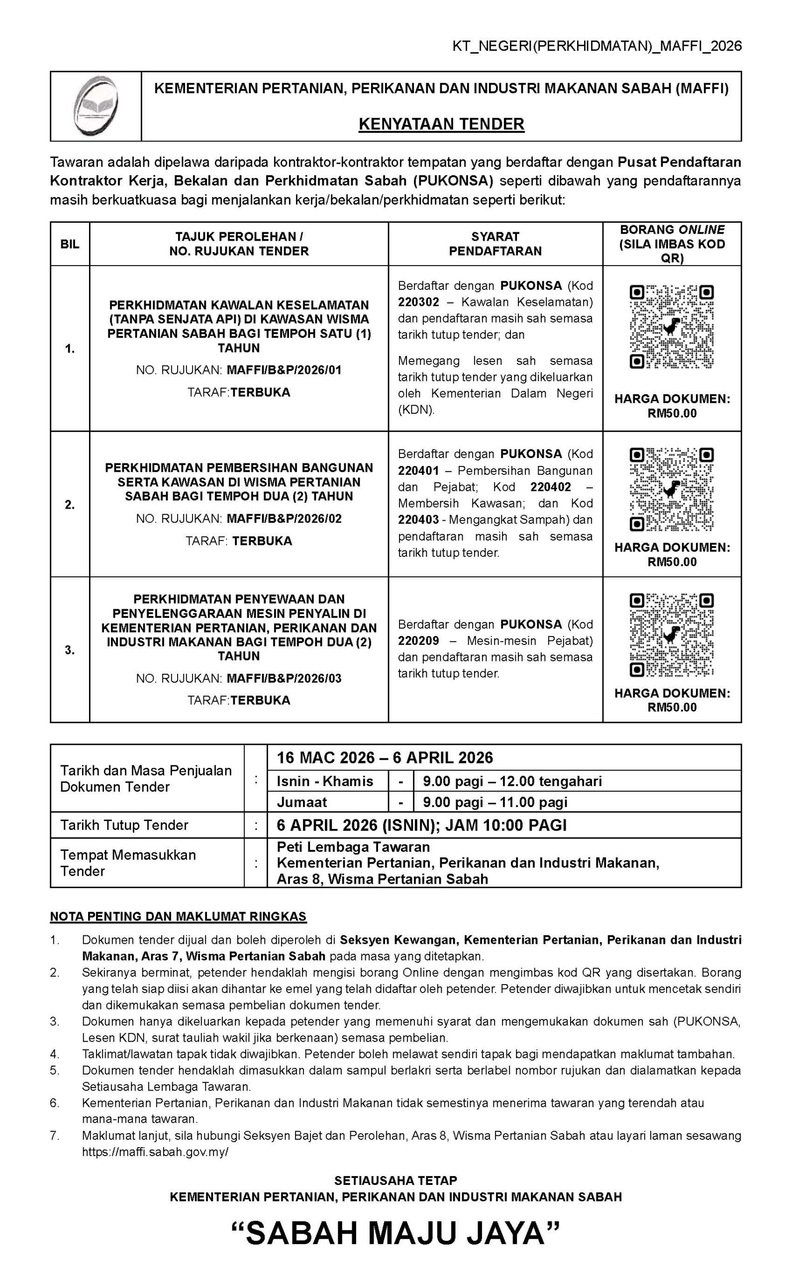 Selamat datang ke laman web Kementerian Pertanian, Perikanan dan Industri Makanan Sabah (MAFFI)