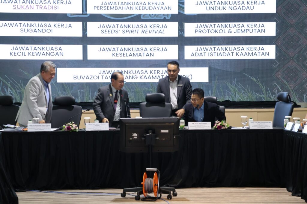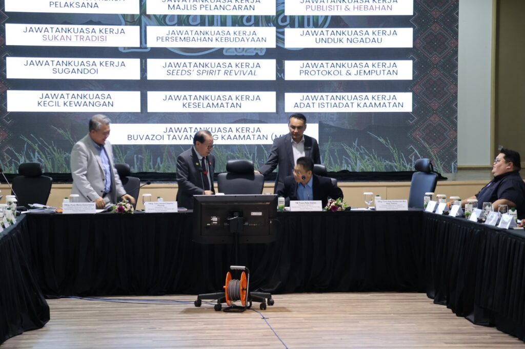 19/06/2024Pengerusi Jawatankuasa Induk Pesta Kaamatan Peringkat Negeri Datuk Seri Panglima Dr Jeffrey G. Kitingan menghadiri Mesyuarat Post-Mortem Sambutan Pesta Kaamatan Peringkat Negeri Sabah Tahun 2024 di Dewan Serbaguna Wisma Pertanian hari ini.